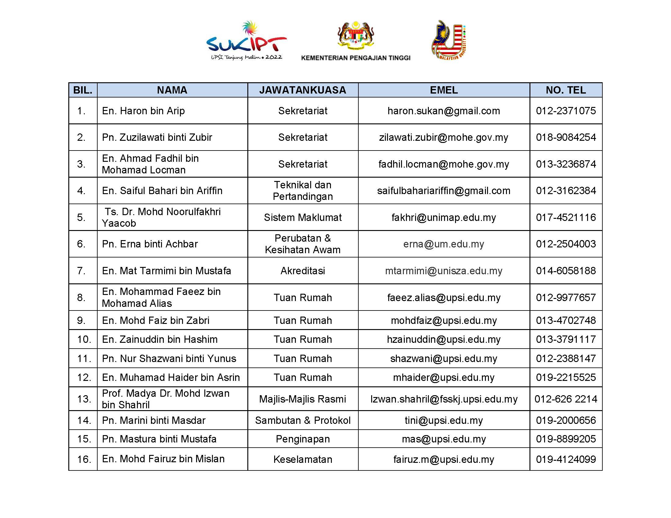SENARAI PEGAWAI JAWATANKUASA SUKIPT 2022